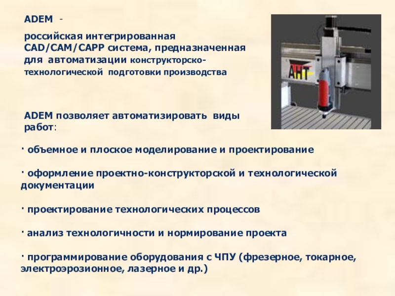 · программирование оборудования с ЧПУ (фрезерное, токарное, электроэрозионное, лазерное и др.)