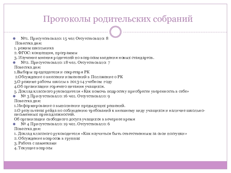 №1. Присутствовало: 15 чел Отсутствовало: 8