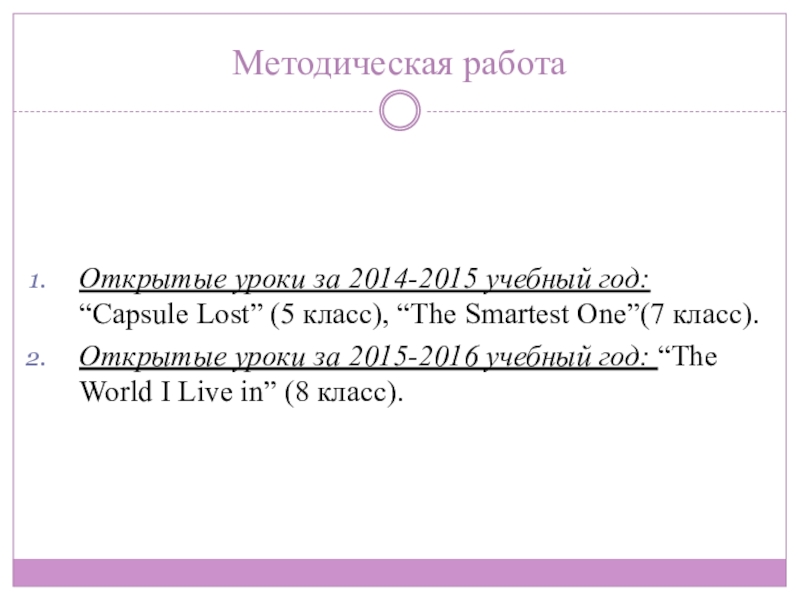 Открытые уроки за 2014-2015 учебный год: “Capsule Lost” (5 класс),