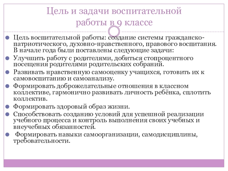 Слайд 16Цель и задачи воспитательной работы в 9 классе