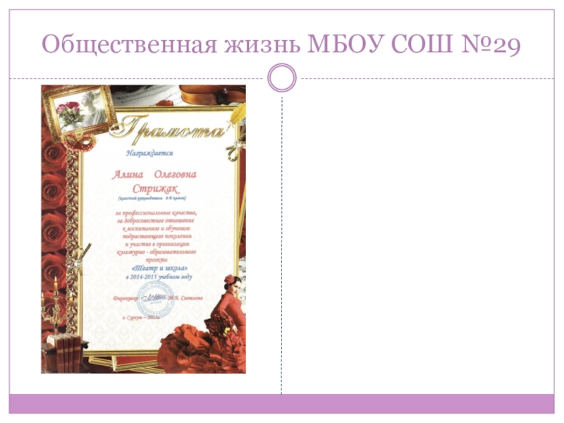 Слайд 2Место работы: Муниципальное Бюджетное Общеобразовательное Учреждение Средняя Общеобразовательная Школа №29