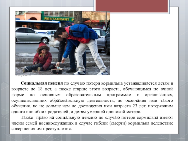 Слайд 10Социальная пенсия по случаю потери кормильца устанавливается детям в возрасте до