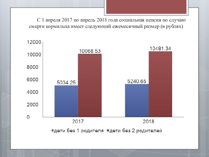 Слайд 12С 1 апреля 2017 по апрель 2018 года социальная пенсия по