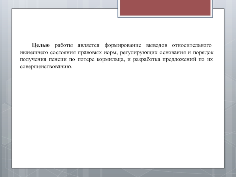 основания и порядок получения пенсии по потере кормильца, и разработка предложений по их совершенствованию.