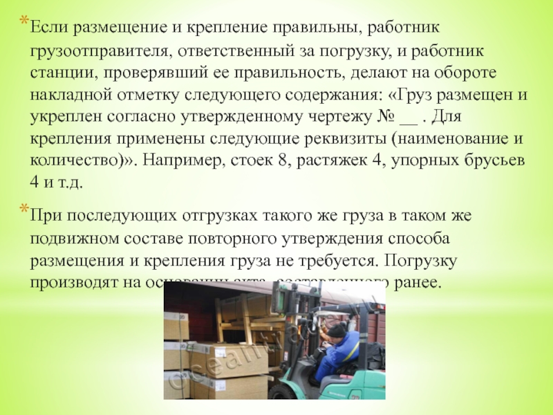 Слайд 27Если размещение и крепление правильны, работник грузоотправителя, ответственный за погрузку, и