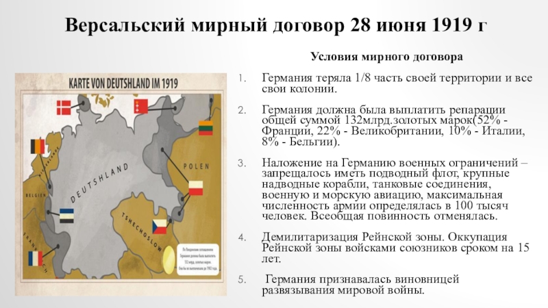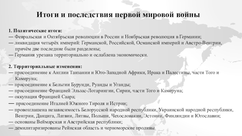― присоединение Францией Эльзас-Лотарингии, Сирии, части Того и Камеруна;