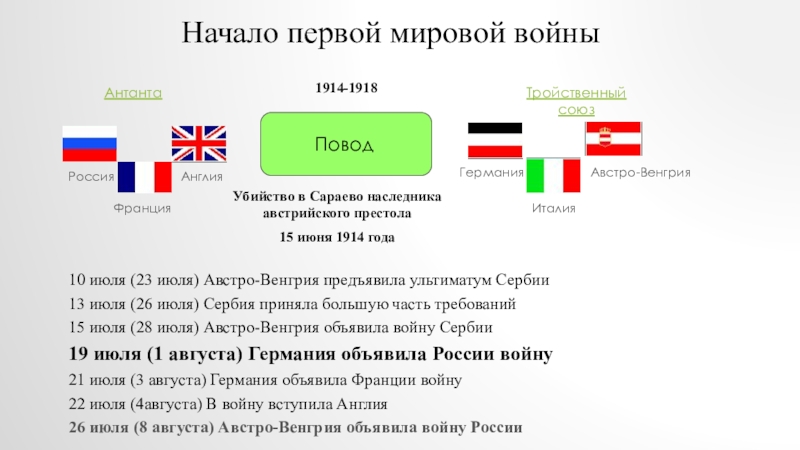 15 июля (28 июля) Австро-Венгрия объявила войну Сербии