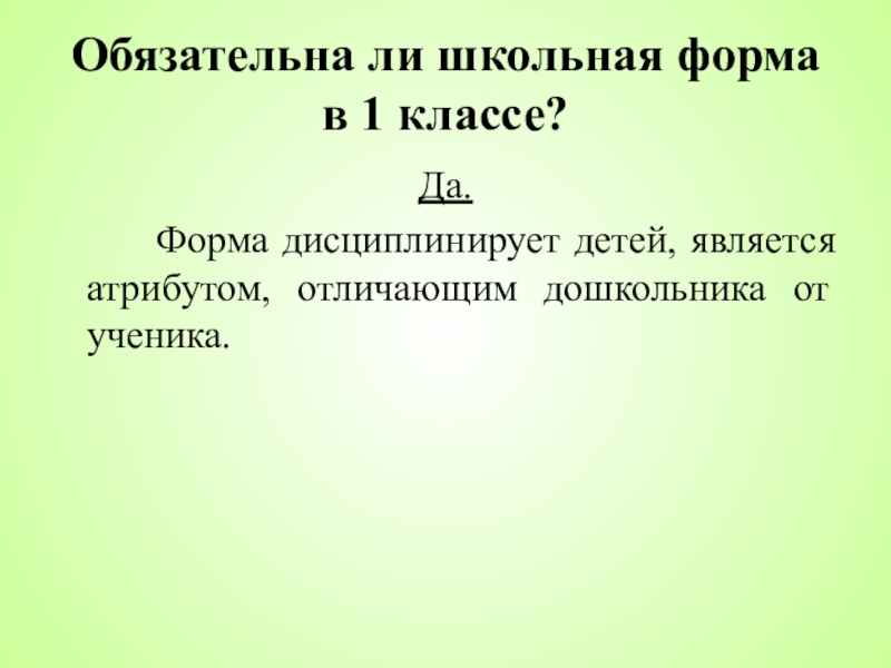Слайд 6Обязательна ли школьная форма в 1 классе?