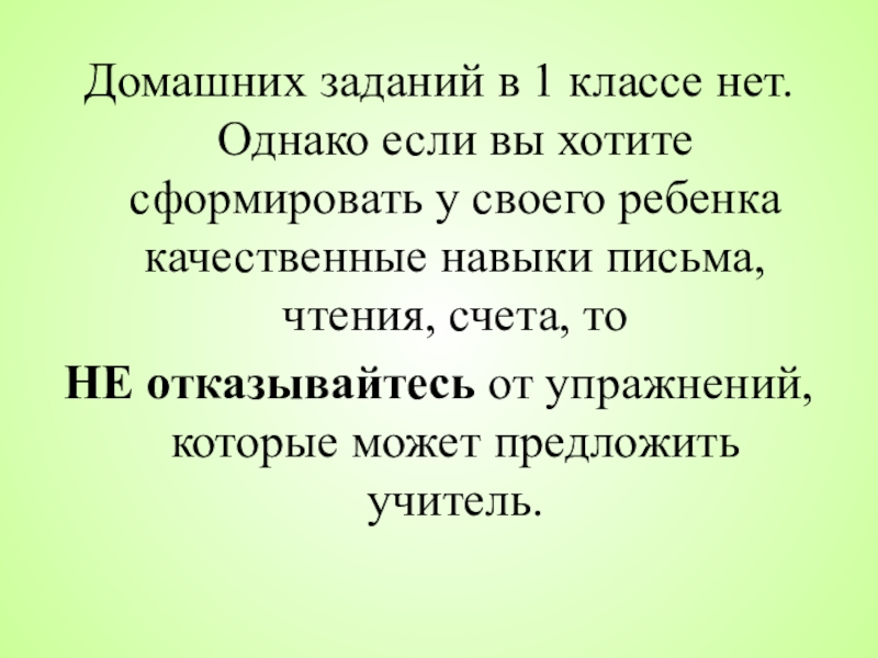 Слайд 11Домашних заданий в 1 классе нет. Однако если вы хотите сформировать