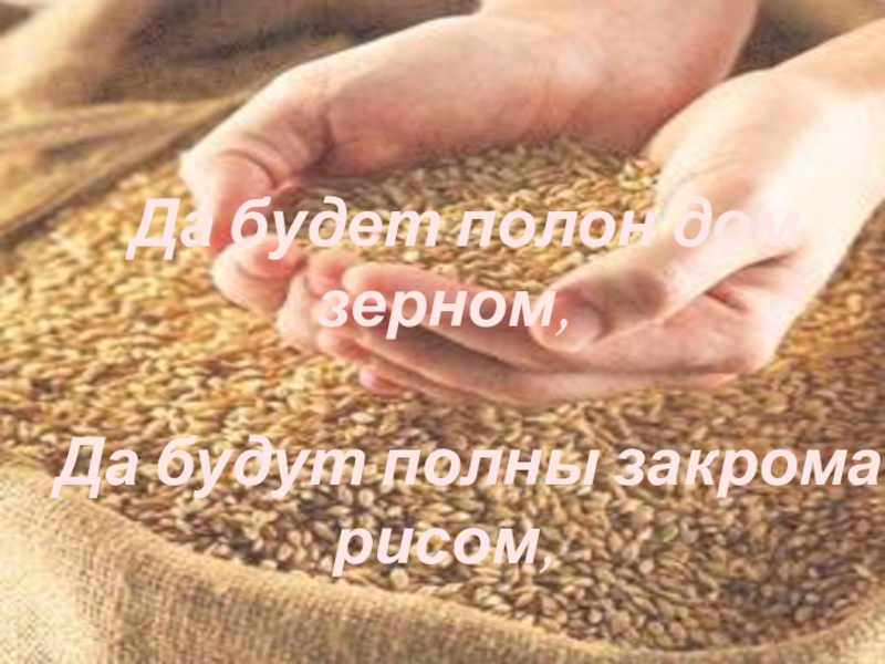 Да будет полон дом зерном,  Да будут полны закрома рисом, Да будет много скота