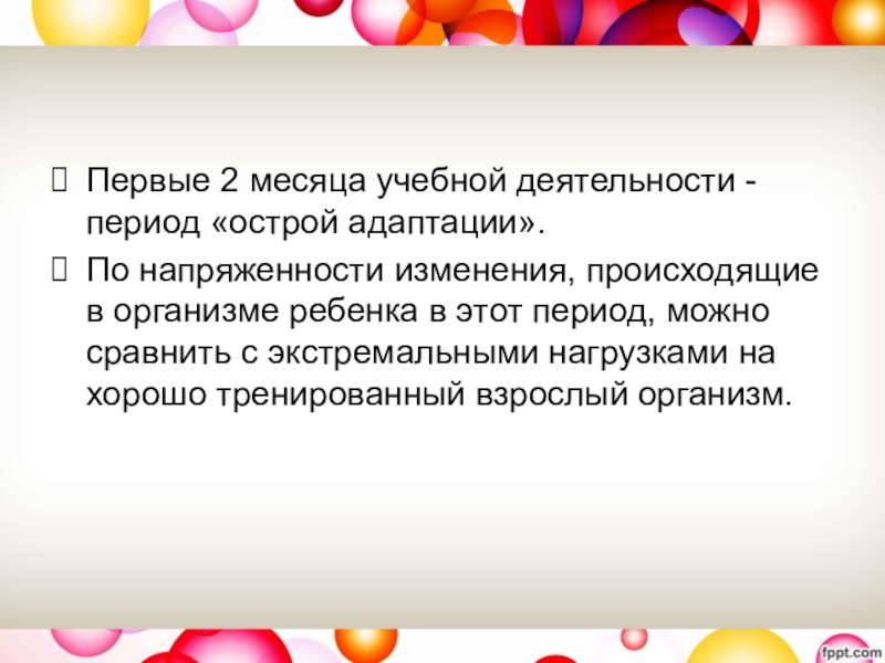 Слайд 2Первые 2 месяца учебной деятельности - период «острой адаптации».