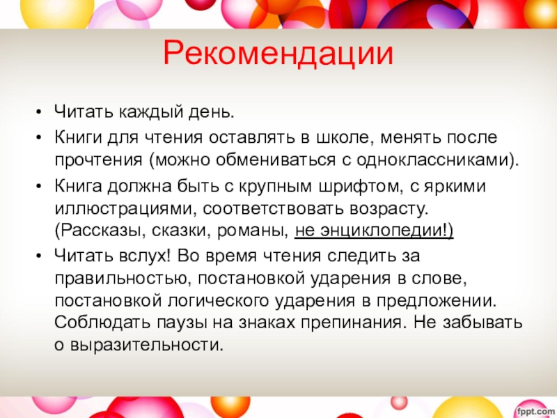 Читать вслух! Во время чтения следить за правильностью, постановкой ударения в слове, постановкой логического ударения в предложении. Соблюдать паузы на знаках препинания. Не забывать о выразительности.