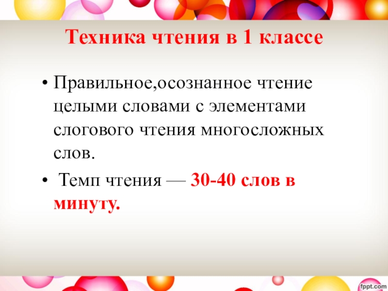 Правильное,осознанное чтение целыми словами с элементами слогового