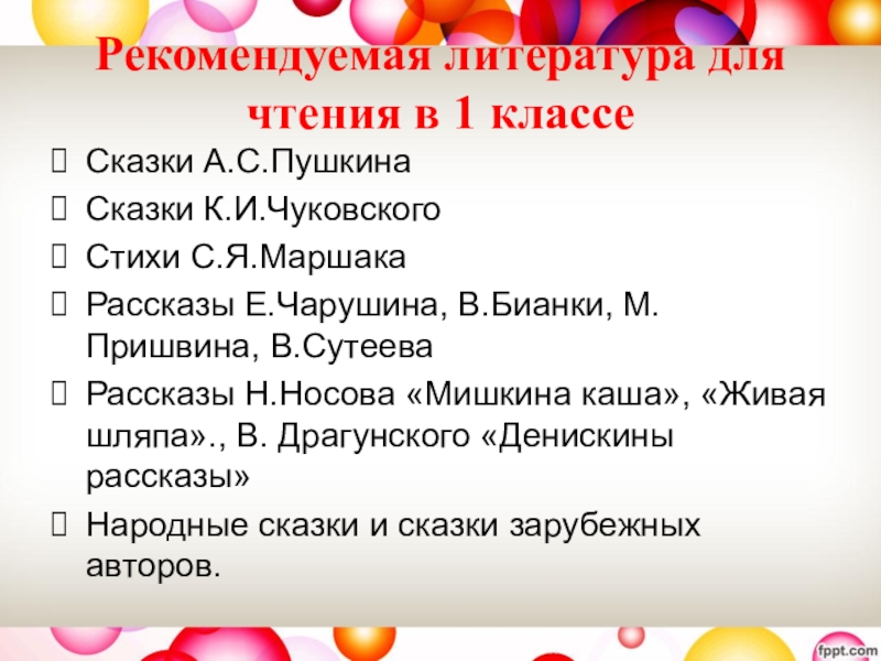 Слайд 7Рекомендуемая литература для чтения в 1 классе