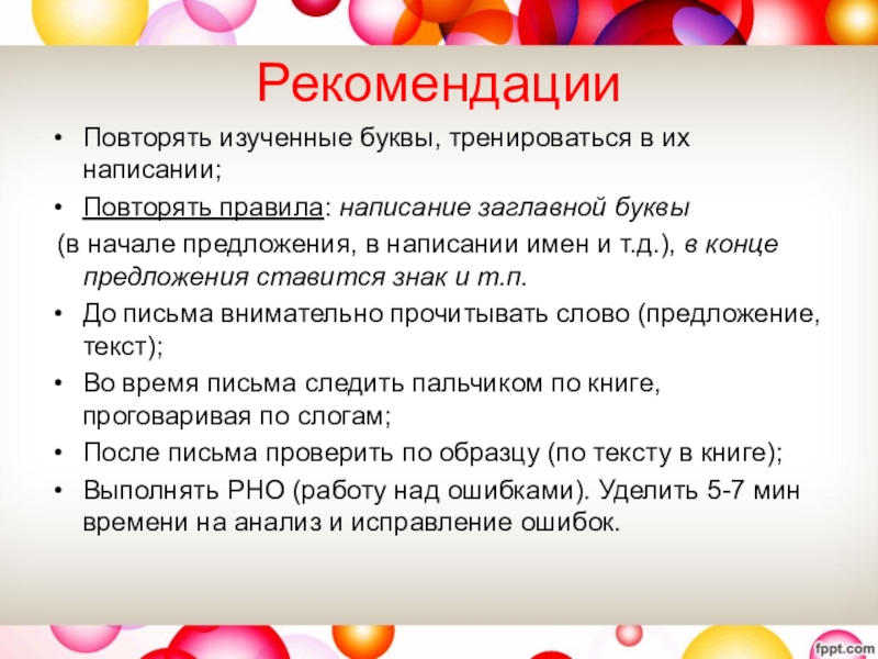 Выполнять РНО (работу над ошибками). Уделить 5-7 мин времени на анализ и исправление ошибок.