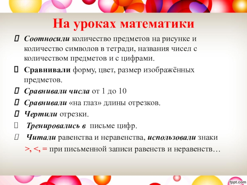 Соотносили количество предметов на рисунке и количество символов в тетради, названия