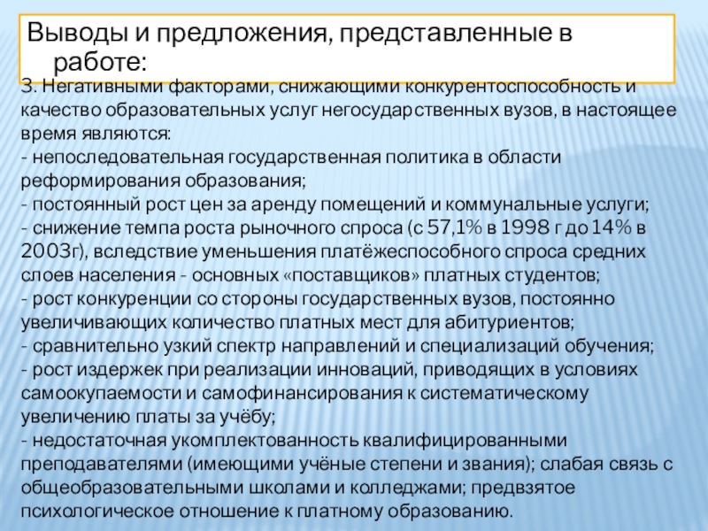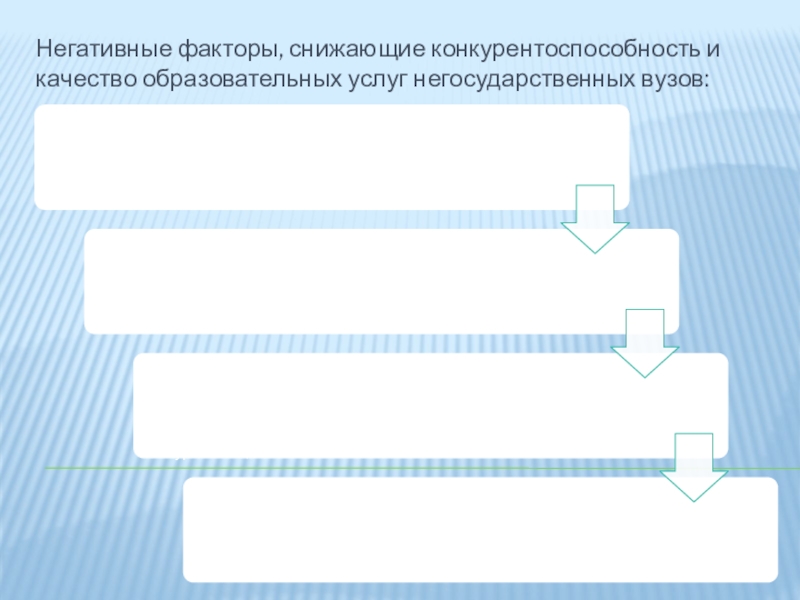 Слайд 22Негативные факторы, снижающие конкурентоспособность и качество образовательных услуг негосударственных вузов: