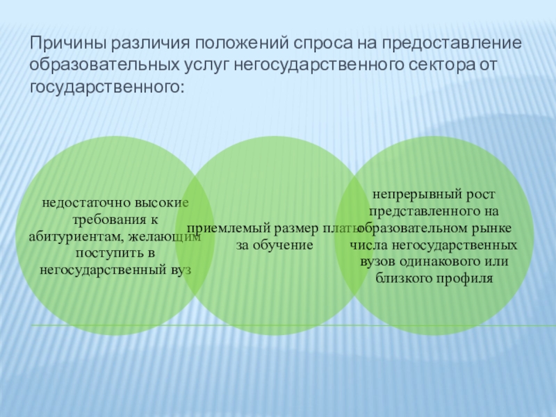 Слайд 5Причины различия положений спроса на предоставление образовательных услуг негосударственного сектора от