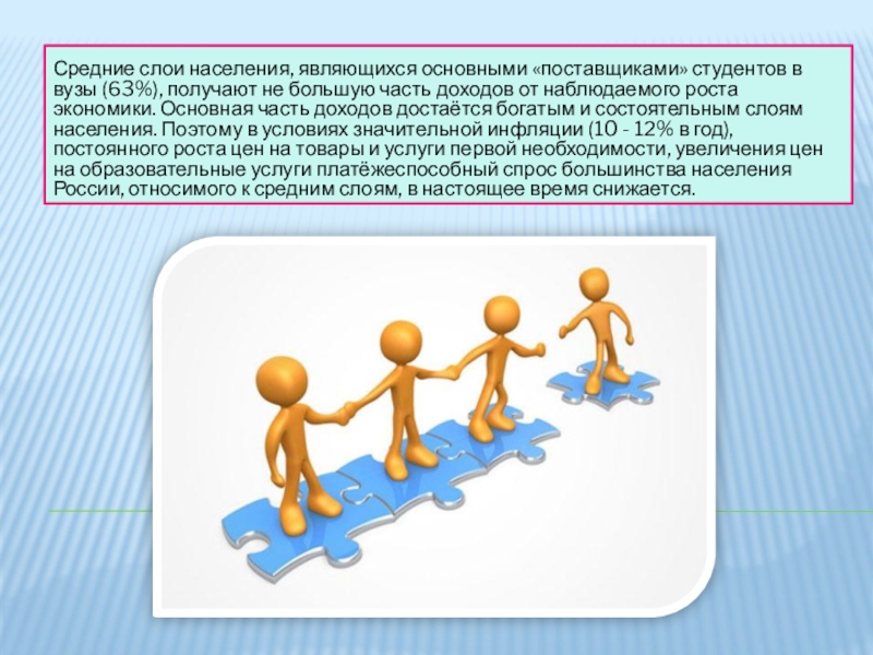 Слайд 12Средние слои населения, являющихся основными «поставщиками» студентов в вузы (63%), получают