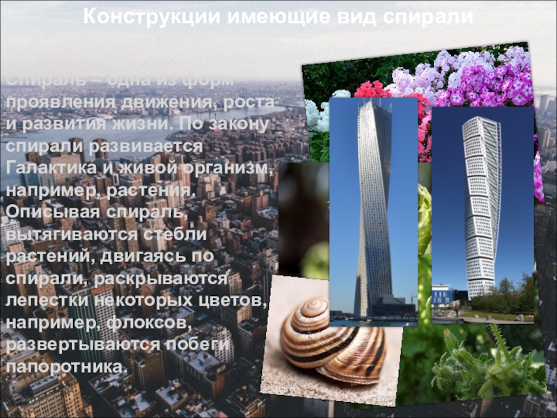 и развития жизни. По закону спирали развивается Галактика и живой организм, например, растения. Описывая спираль, вытягиваются стебли растений, двигаясь по спирали, раскрываются лепестки некоторых цветов, например, флоксов, развертываются побеги папоротника.