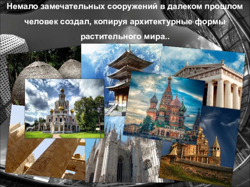 Слайд 5Немало замечательных сооружений в далеком прошлом человек создал, копируя архитектурные формы