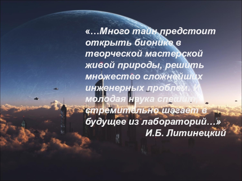 Слайд 2«…Много тайн предстоит открыть бионике в творческой мастерской живой природы, решить