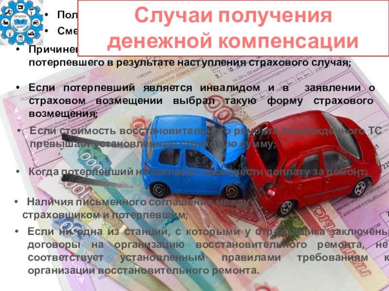 Когда потерпевший не согласен произвести доплату за ремонт;