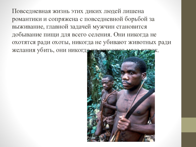 Слайд 8Повседневная жизнь этих диких людей лишена романтики и сопряжена с повседневной
