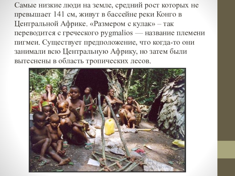 Слайд 6Самые низкие люди на земле, средний рост которых не превышает 141