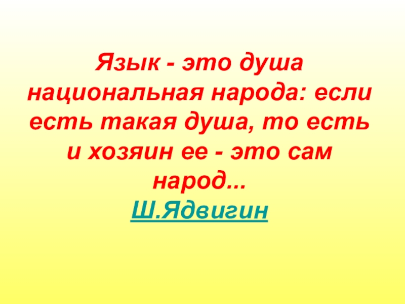 Язык - это душа национальная народа: если есть такая душа, то есть и хозяин ее - это
