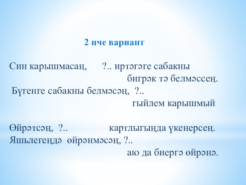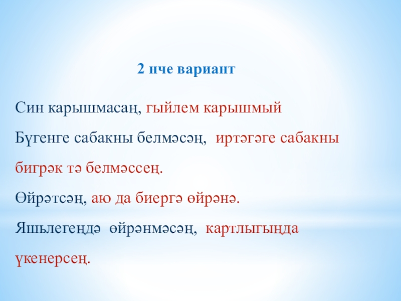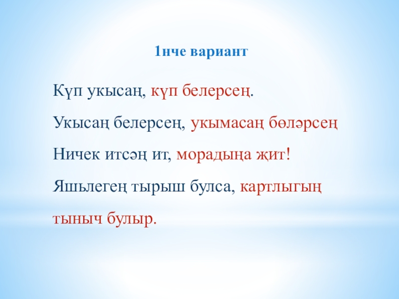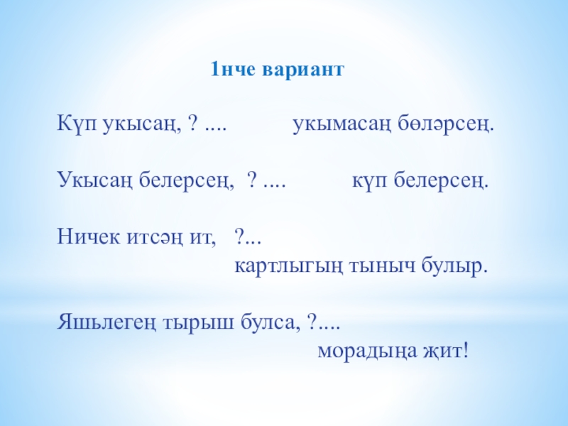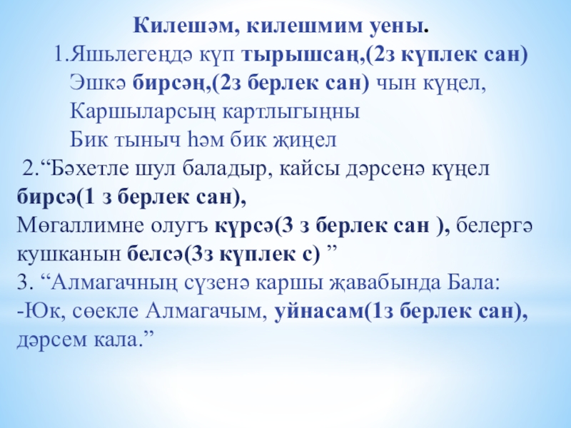 2.“Бәхетле шул баладыр, кайсы дәрсенә күңел бирсә(1 з берлек сан),
