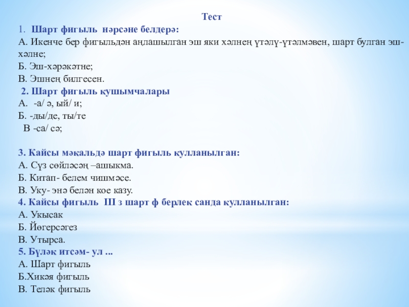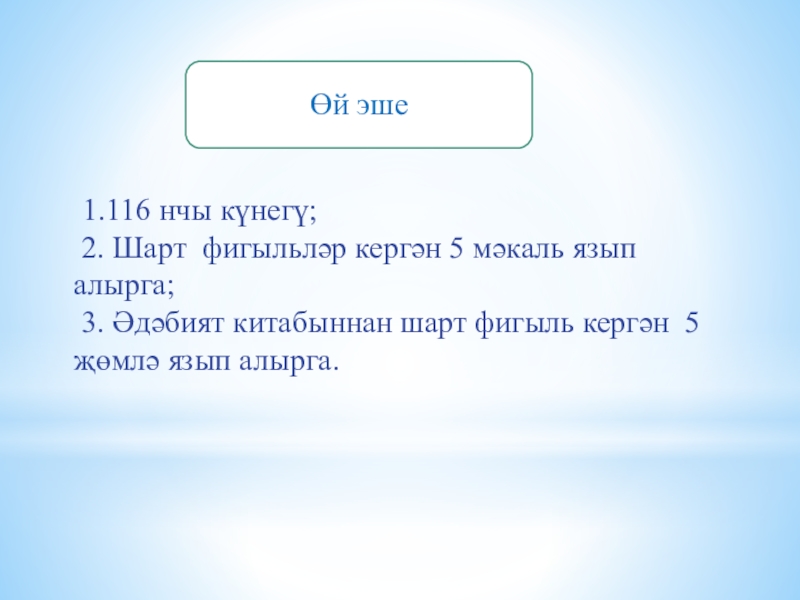 3. Әдәбият китабыннан шарт фигыль кергән 5 җөмлә язып алырга.