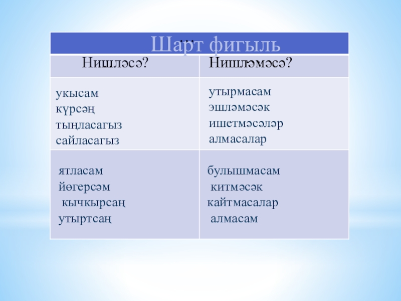 4. Кайсы фигыль III з шарт ф берлек санда кулланылган: