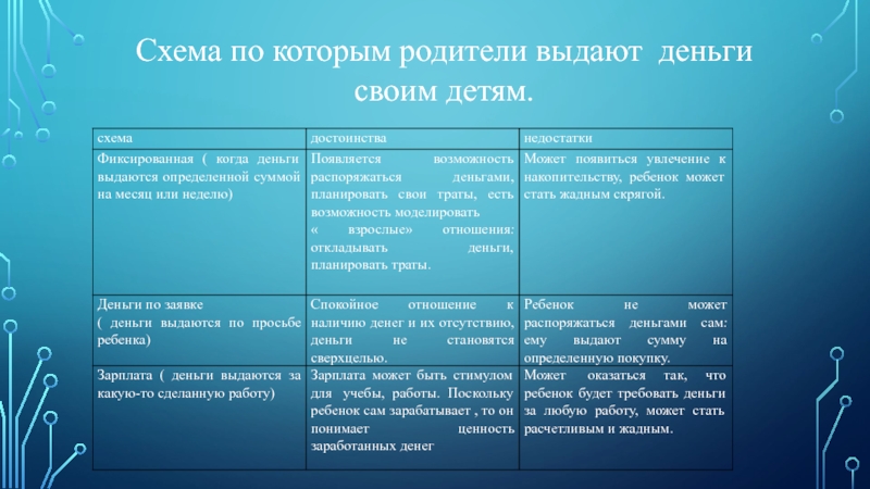 Слайд 4Схема по которым родители выдают деньги своим детям.