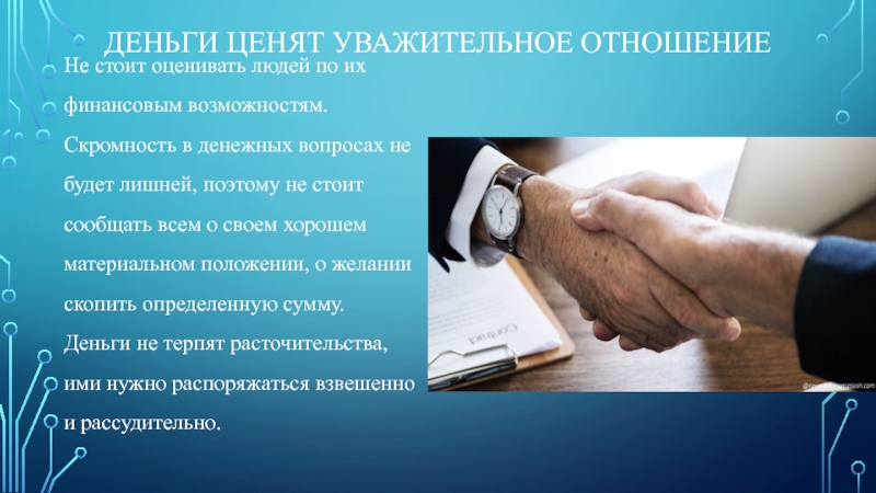 Скромность в денежных вопросах не будет лишней, поэтому не стоит сообщать всем о своем хорошем материальном положении, о желании скопить определенную сумму.