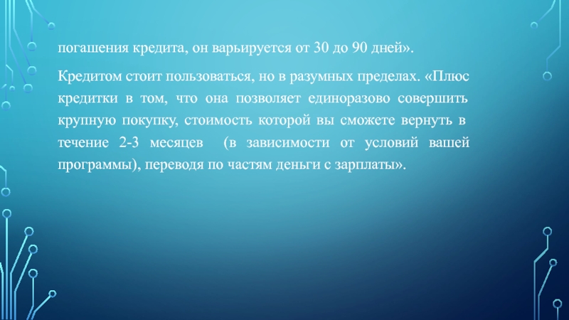 Слайд 12погашения кредита, он варьируется от 30 до 90 дней».