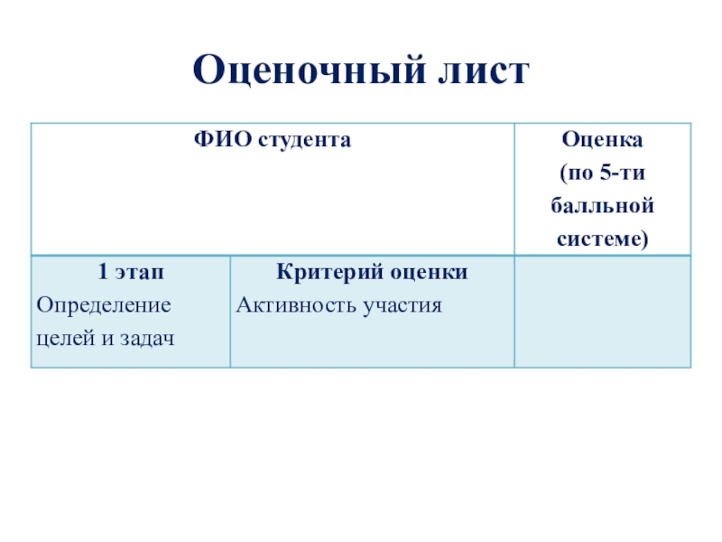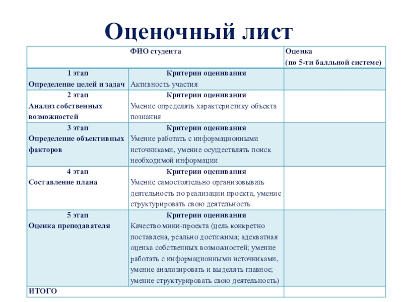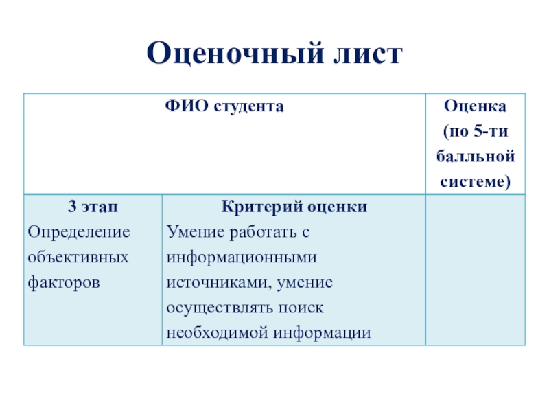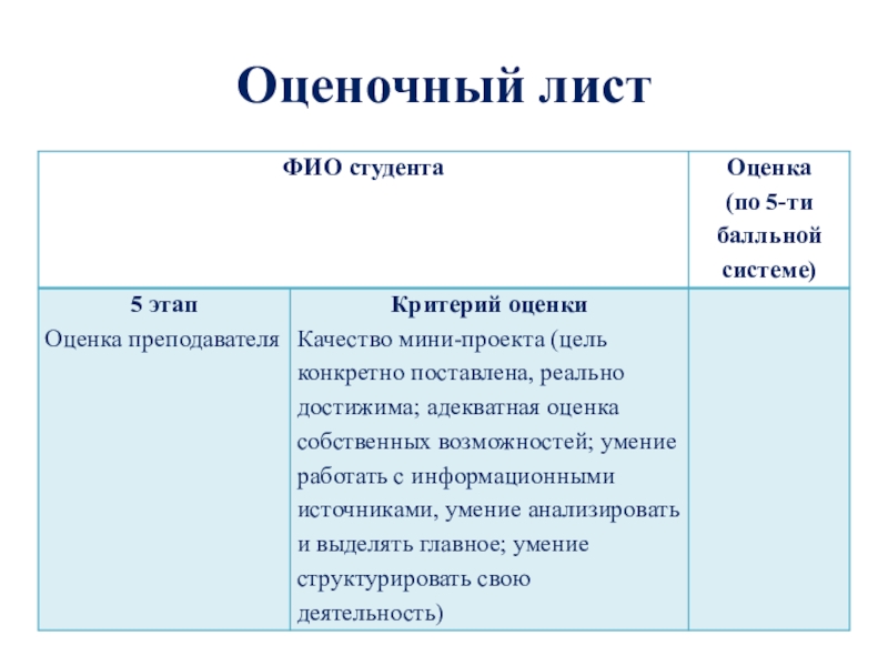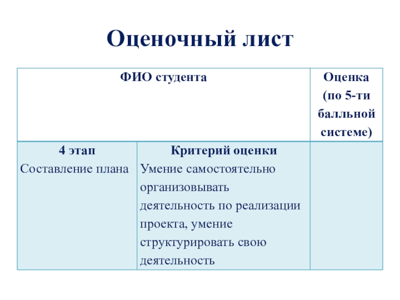Слайд 8Оценочный лист