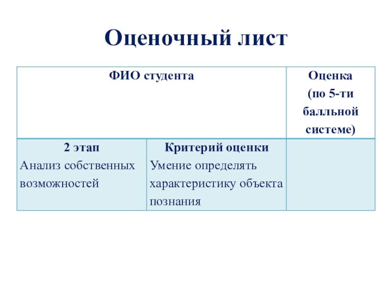 Слайд 13Оценочный лист