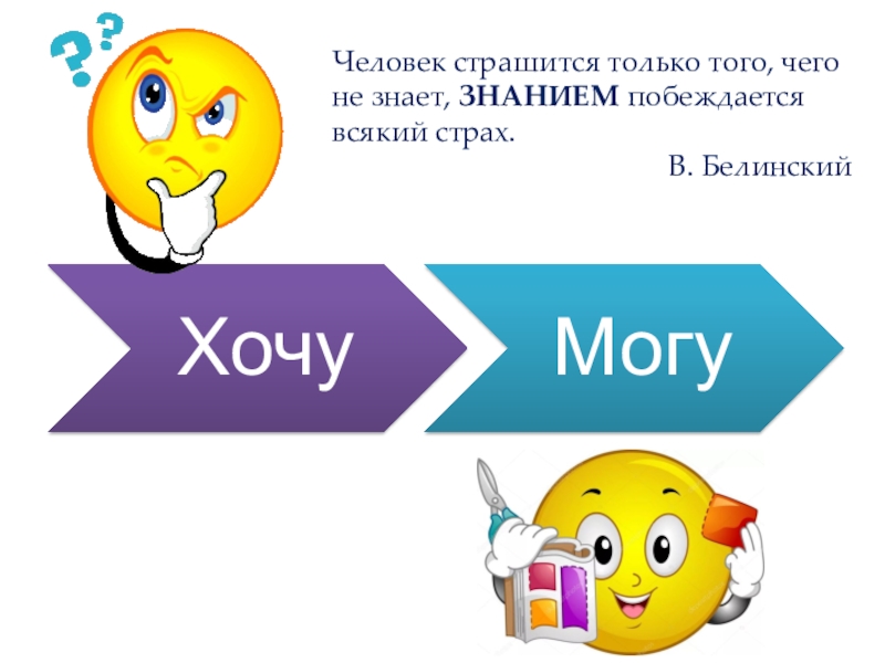 Человек страшится только того, чего не знает, ЗНАНИЕМ побеждается всякий страх.В. Белинский