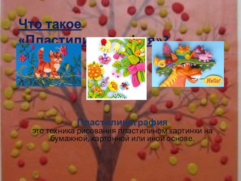 Что такое «Пластилинография»?Пластилинографияэто техника рисования пластилином картинки на бумажной, картонной или иной основе.