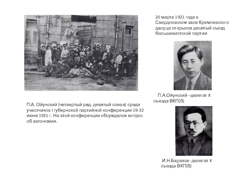 П.А.Ойунский –делегат X съезда ВКП(б)