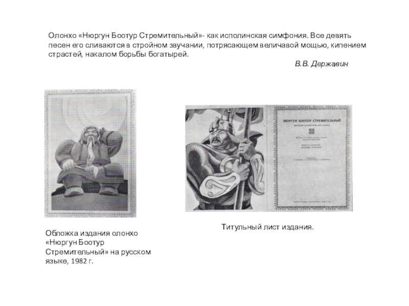 Обложка издания олонхо «Нюргун Боотур Стремительный» на русском языке, 1982 г.