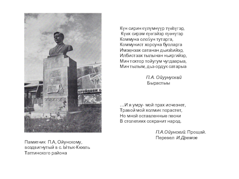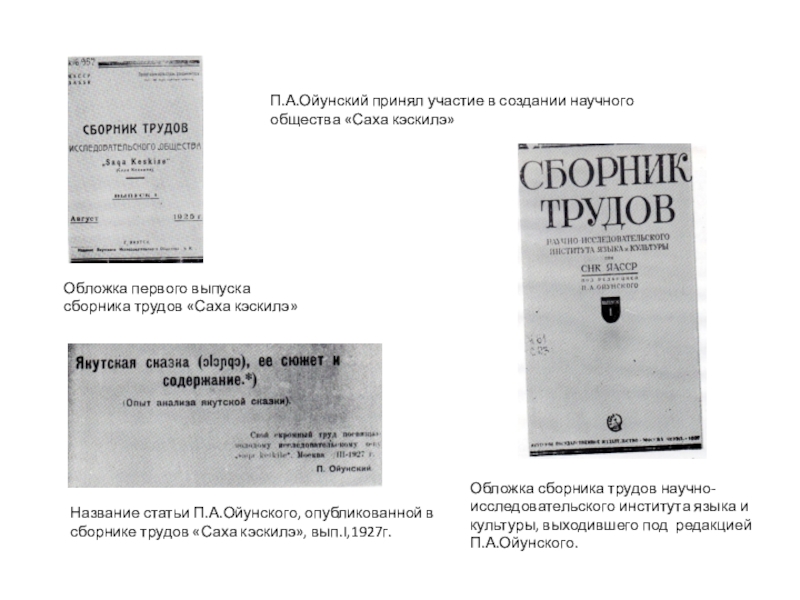 Название статьи П.А.Ойунского, опубликованной в сборнике трудов «Саха кэскилэ», вып.I,1927г.