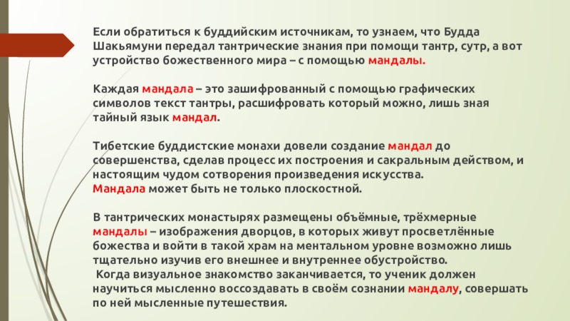 тантрические знания при помощи тантр, сутр, а вот устройство божественного мира – с помощью мандалы.