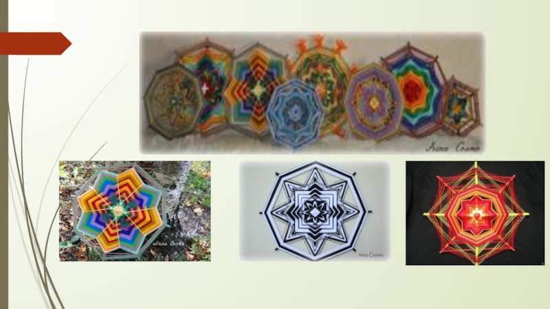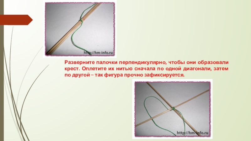 Слайд 20Разверните палочки перпендикулярно, чтобы они образовали крест. Оплетите их нитью сначала