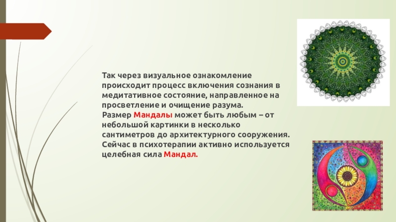 Слайд 5Так через визуальное ознакомление происходит процесс включения сознания в медитативное состояние,