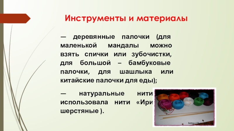 — деревянные палочки (для маленькой мандалы можно взять спички