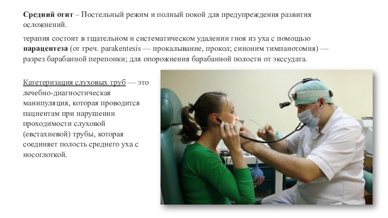 Слайд 10Средний отит – Постельный режим и полный покой для предупреждения развития