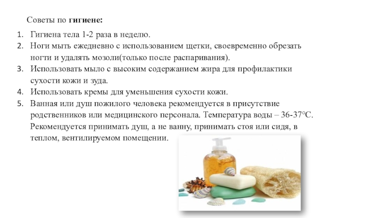 использованием щетки, своевременно обрезать ногти и удалять мозоли(только после распаривания).