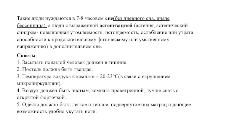 Слайд 10Такие люди нуждаются в 7-8 часовом сне(без дневного сна, иначе бессонница),